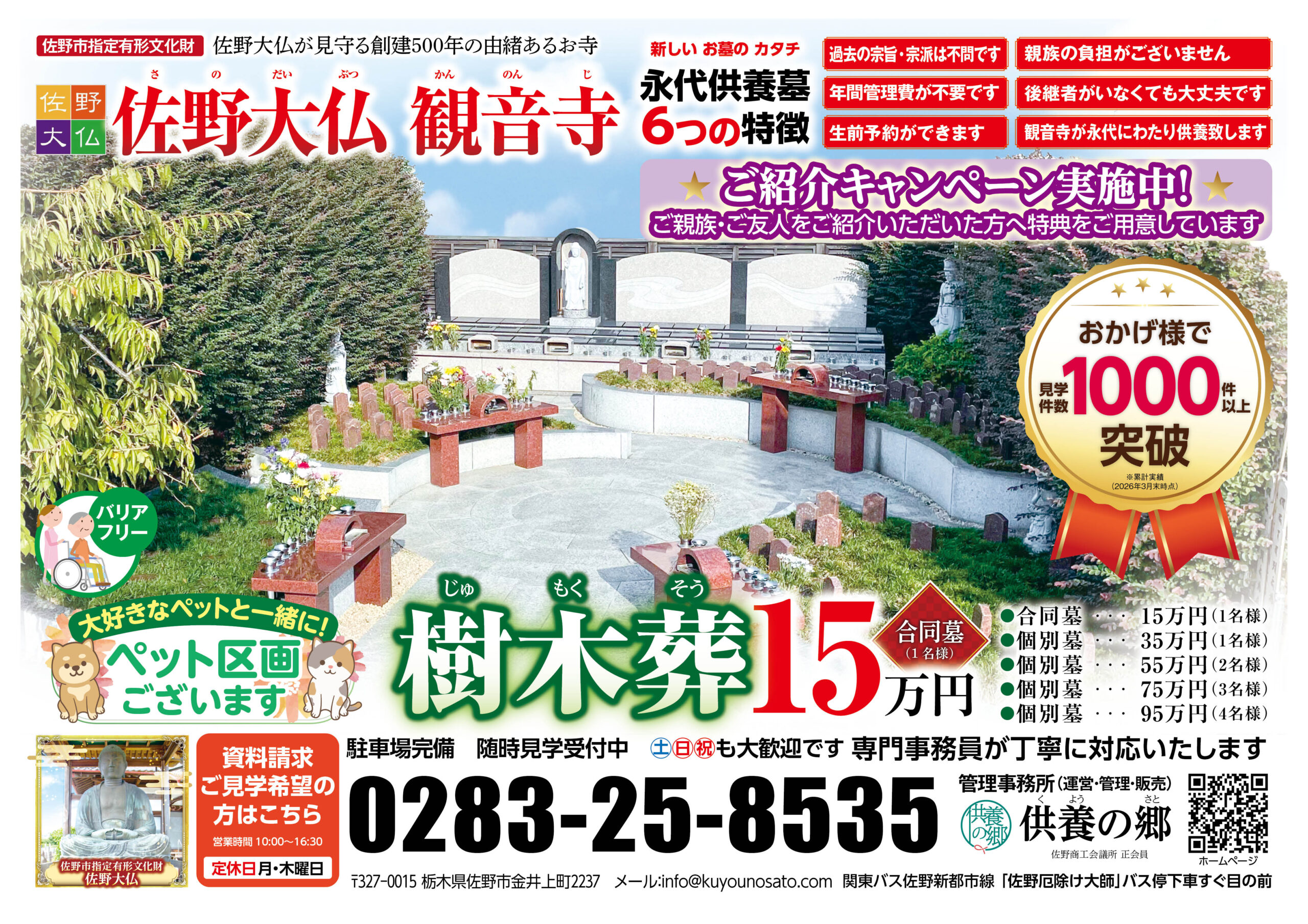 <佐野大仏 観音寺 永代樹木葬のご購入者> 佐野市・足利市・小山市・栃木市・太田市・館林市の方など