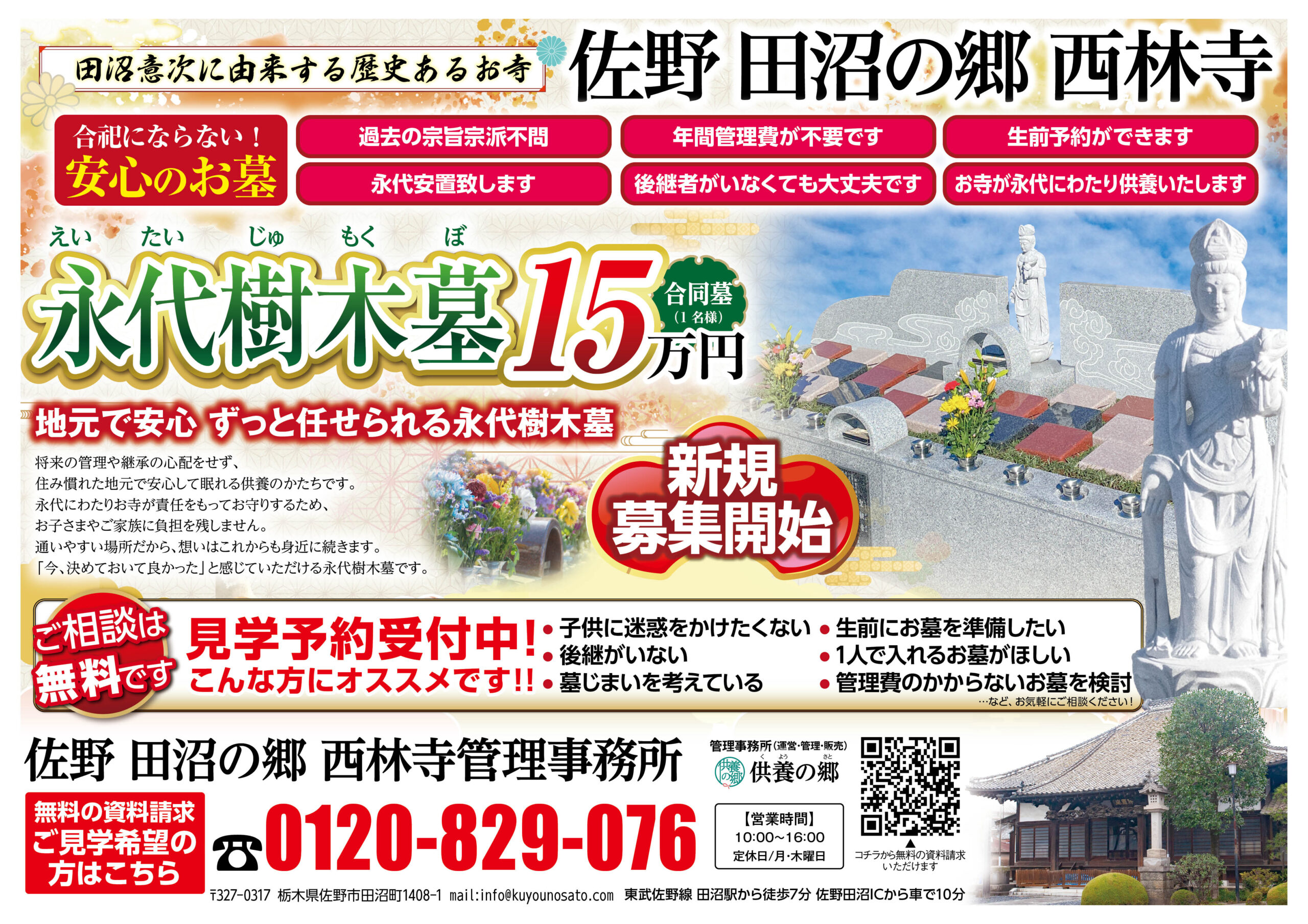 佐野 田沼の郷 西林寺 永代樹木葬のご案内